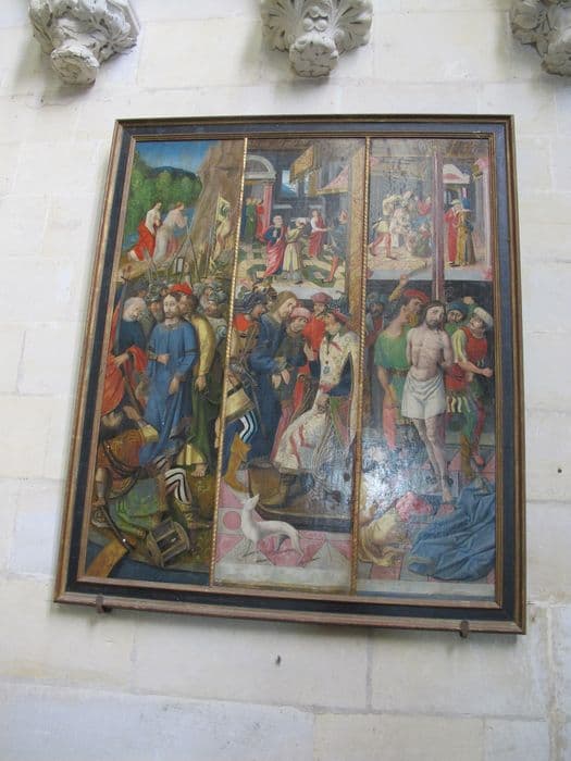 3 anciens vantaux de placard, tableaux formant triptyque : le Baiser de Judas, le Christ devant Pilate, le Flagellation, le Christ et saint Pierre, le Reniement de saint Pierre, le Martyre de saint Pierre
