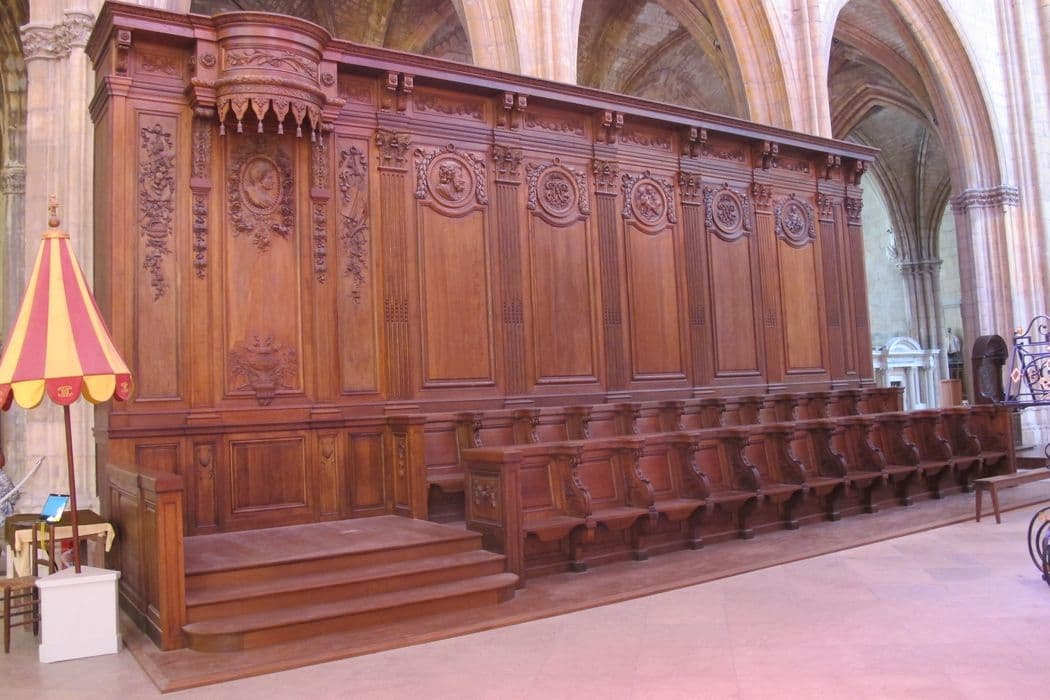 lieu de déplacement : Bourgogne-Franche-Comté, 58, Nevers, cathédrale. Les trois sièges de stalle sont réinstallés dans le choeur (anciennement chapelle Saint Antoine Ermite)