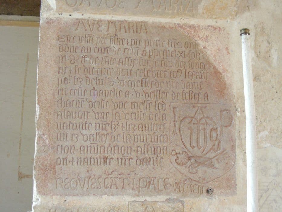 plaque commémorative (inscription murale) des fondations de Jean et Pierre PIERRE