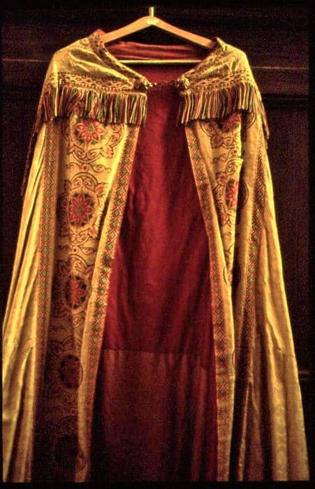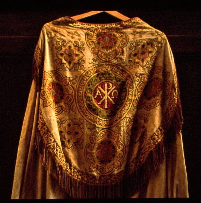 Chape dorée en brocart de satin et de soie avec rehauts.