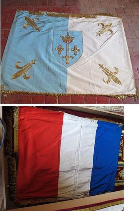 Drapeau tricolore. Franges en cannetille dorée.