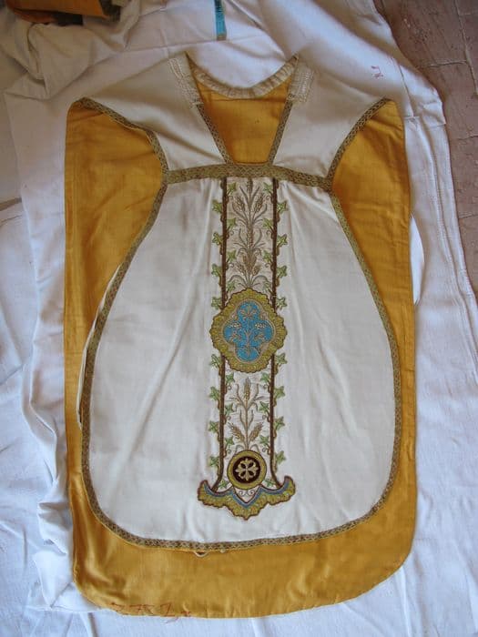 chapelle ; chasuble ; manipule ; étole ; bourse de corporal ; voile de calice
