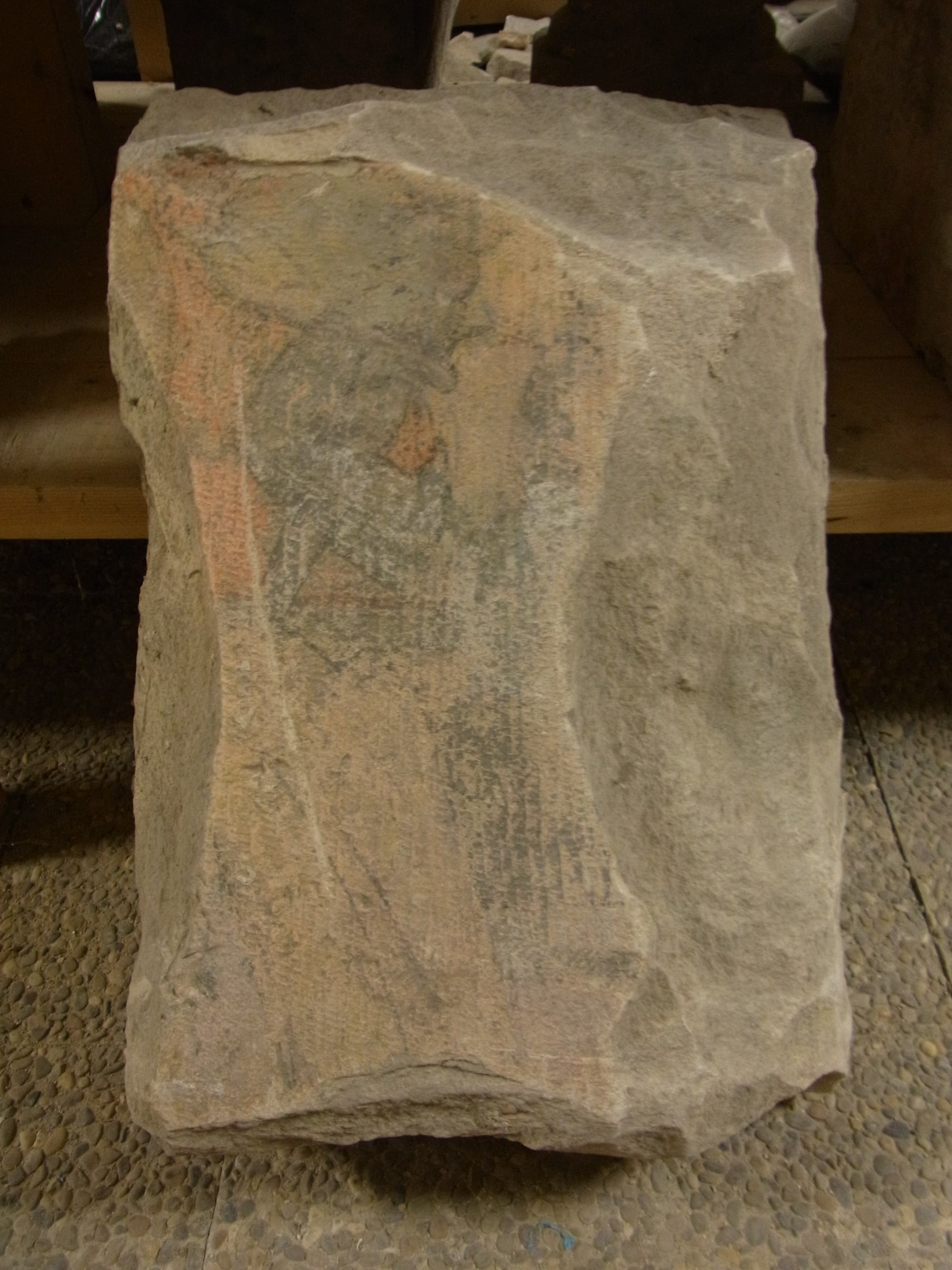 Fragment de pierre polychrome