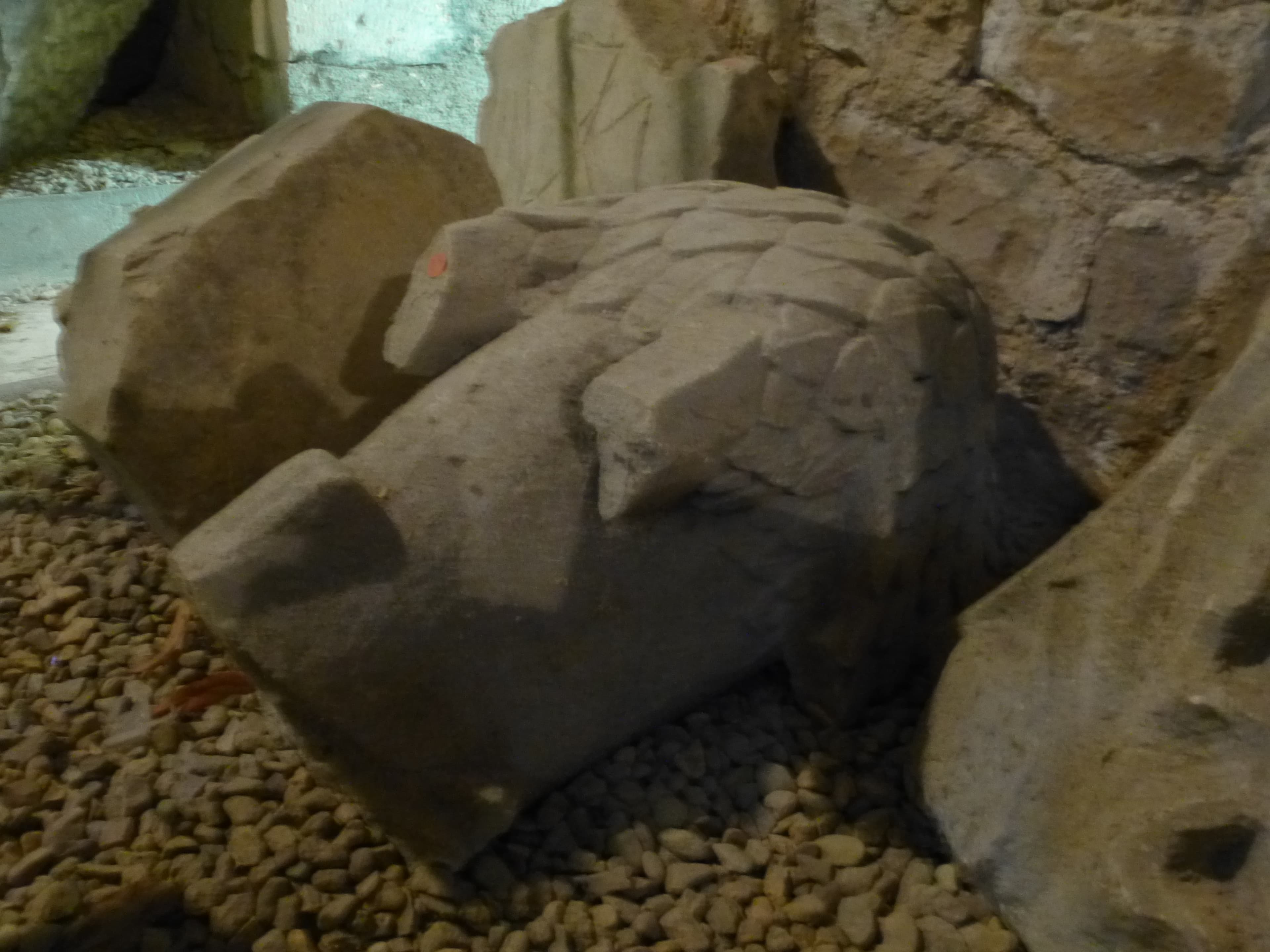 ""Les pattes sont cassées, la tête a disparu, les ailes aussi. Le plumage est stylisé: il semble fait de feuilles oblongues qui se recouvrent régulièrement. Il s'agit sans doute de l'une des nombreuses représentations des évangélistes, en l'occurance de saint Jean"" (Laidet 1983)