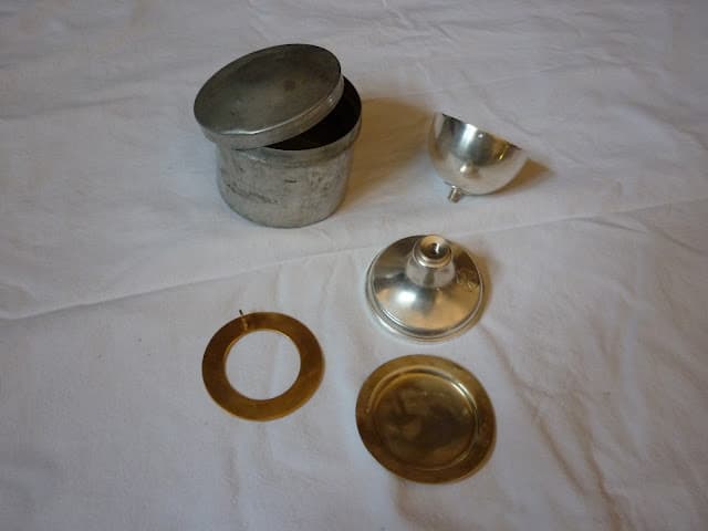 Autel portatif comprenant un calice démontable et sa patène, une croix d'autel sur un cercle de métal