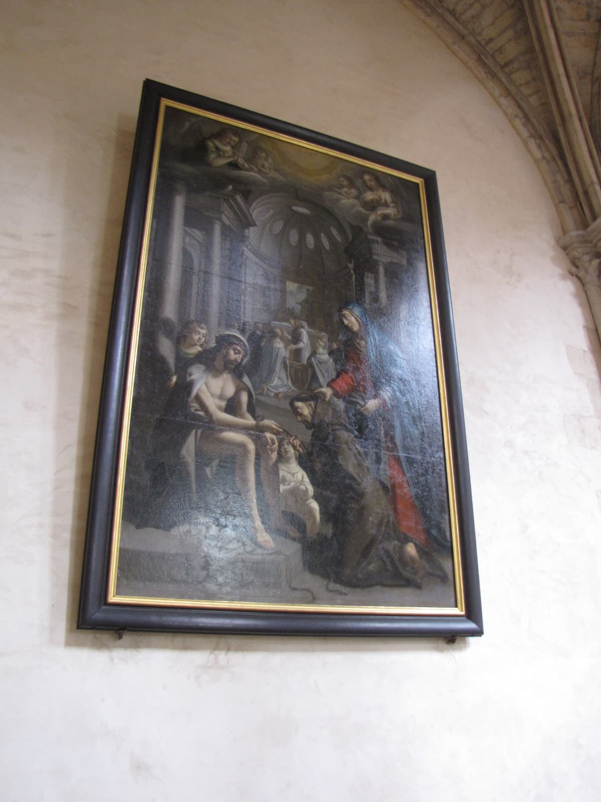 Au fond, Saint Louis recevant la cordelière de Tertiaire de SAINT Fran9ois; Sur l'autel, SAINT Fran9ois recevant les stigmates
