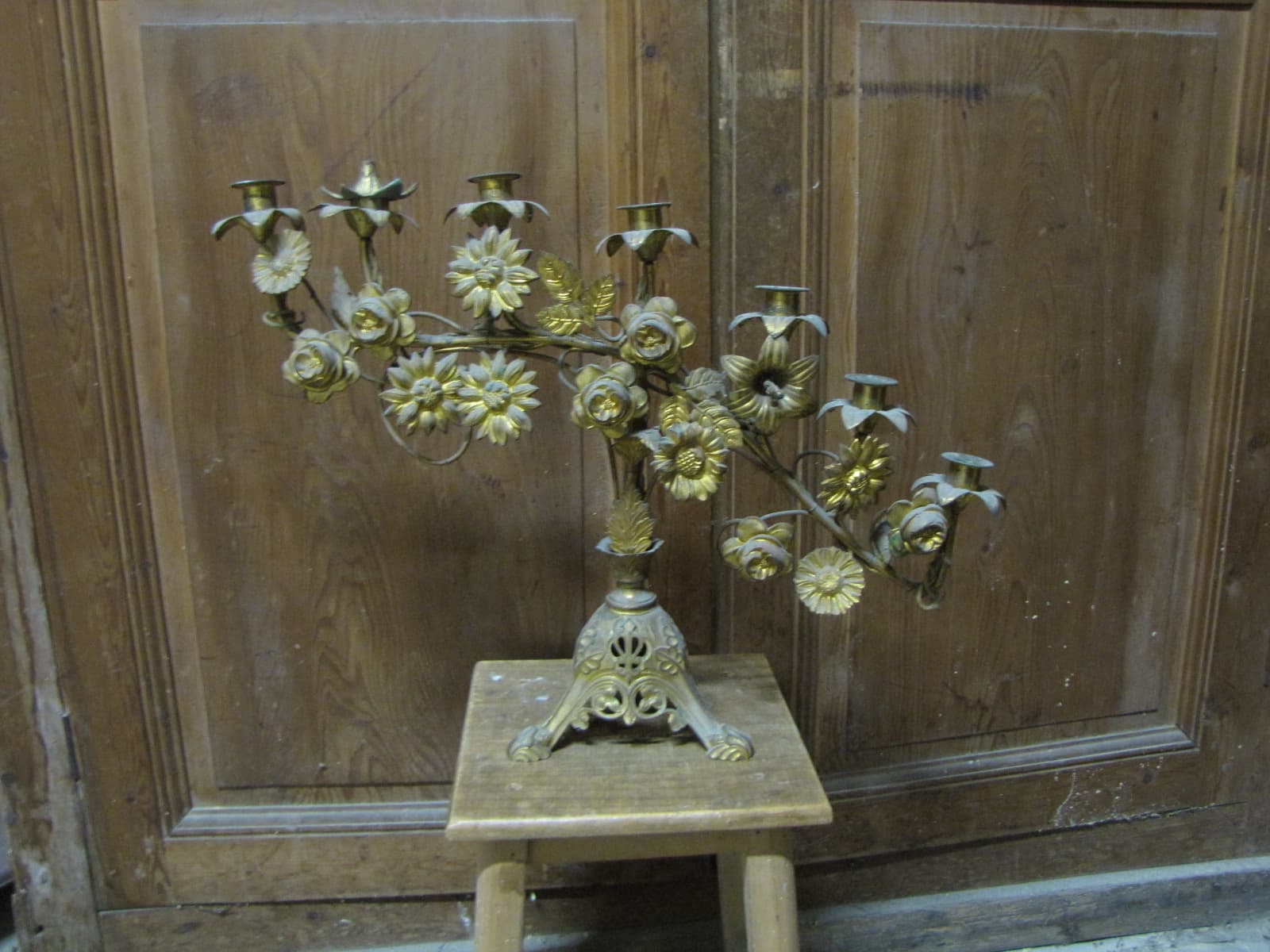 Sept bobèches, tripode, décor de roses et de marguerites