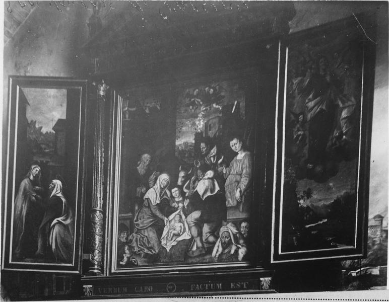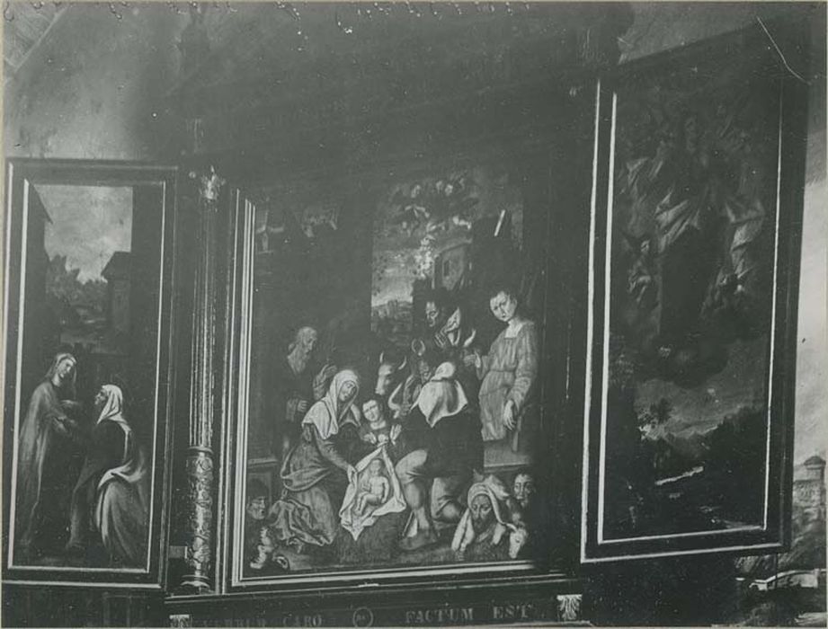 retable (triptyque, en pendant) : l'Adoration des bergers, la Visitation, l'Assomption