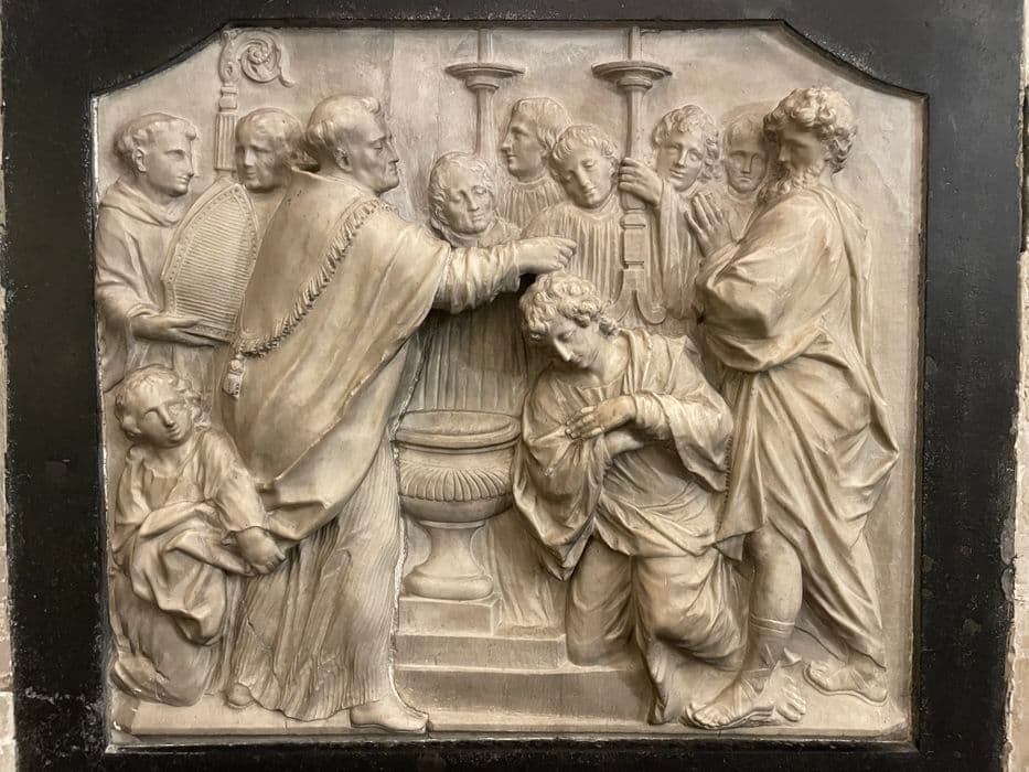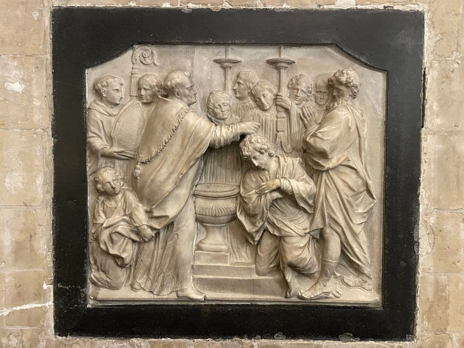 2 bas-reliefs : Baptême de saint Ambroise (le), élection de saint Ambroise (?)