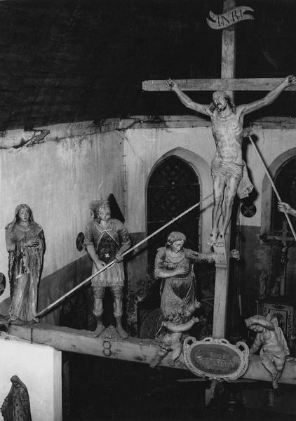 sur la poutre de gloire : statues de Marie de Magdala, la Vierge Marie, saint Jean et deux soldats qui entourent le Christ en croix