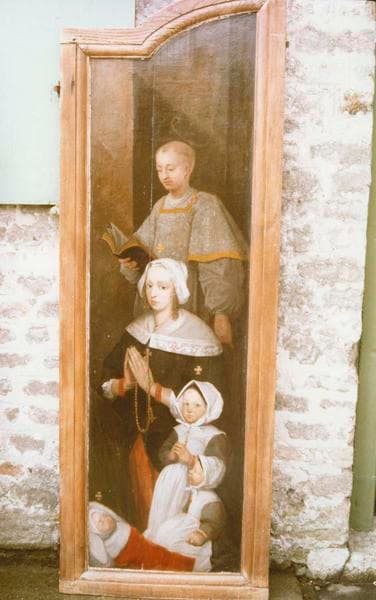 retable (triptyque) : Saint Blaise, homme et femme en donateurs, saint Léonard