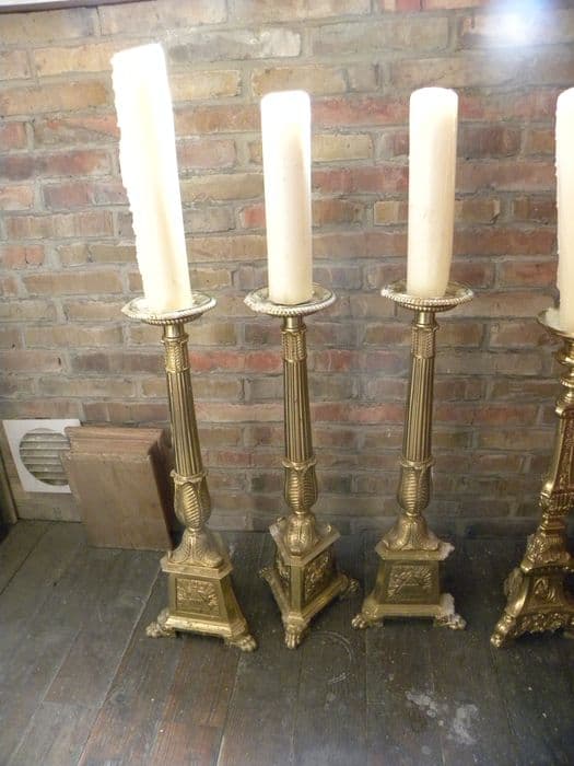 Quatre chandeliers, dont deux sur l'autel de Sainte-Barbe et deux sur l'autel de Saint-Roch.
