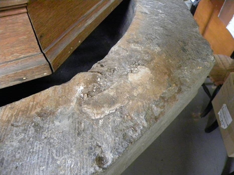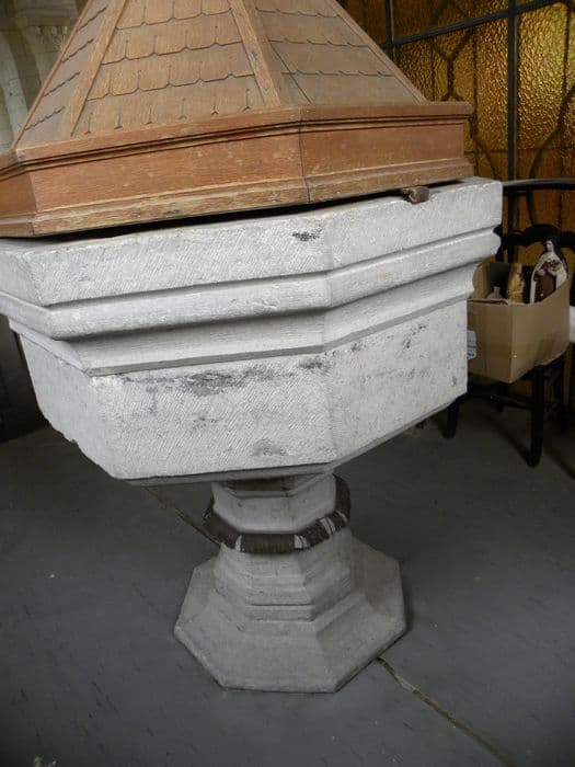 Fonts baptismaux en pierre de Soignies.