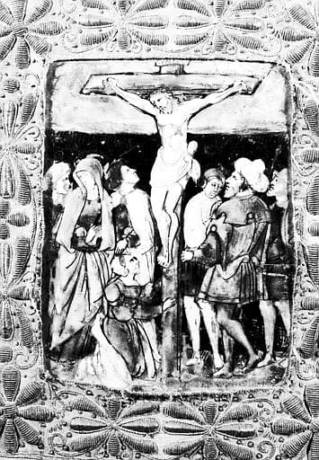 POP | Plateforme ouverte du patrimoine2 tableaux peints à l'émail et leurs cadres : la Crucifixion et la Mise au tombeau