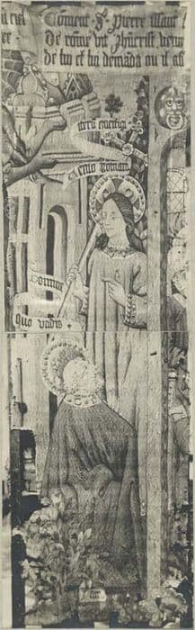 POP | Plateforme ouverte du patrimoinefragment d'une pièce murale de la tenture de la vie de saint Pierre : saint Pierre fuyant Rome rencontre le Christ 'Domini, quo vadis ?'