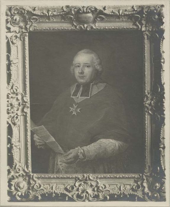 Ce portrait représente le cardinal Renaud Pottier de Gesvres (évêque de Beauvais, 1728-1772). Cette toile a été gravée par R. Gaillard en 1761. Le tableau a été déposé par la Commission des Hospices de Beauvais au musée en 1920. Un portrait du cardinal par Pompeo Batoni (1708-1787) est passé en vente les 18 et 19 décembre 1940 à la vente Dubois Chefdebien à Paris. Un portrait du cardinal par Pompeo Batoni est aussi passé en vente chez Christie's à New-York le 18 juin 1982. Ce tableau pourrait, d'après Pierre Rosenberg, être l'original du tableau de Beauvais, celui du musée étant une copie d'atelier. Cet original a peut-être été acheté par le musée de Toledo (Etats Unis). Le tableau de Beauvais est actuellement conservé dans les réserves du musée.