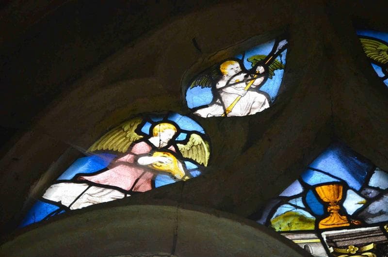 ensemble de 3 verrières (baies 7, 9, 11) : tympans avec fragments anciens