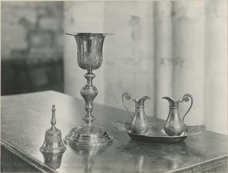 Chapelle en vermeil composée d'un calice, d'une patène, d'un plateau et de deux burettes.