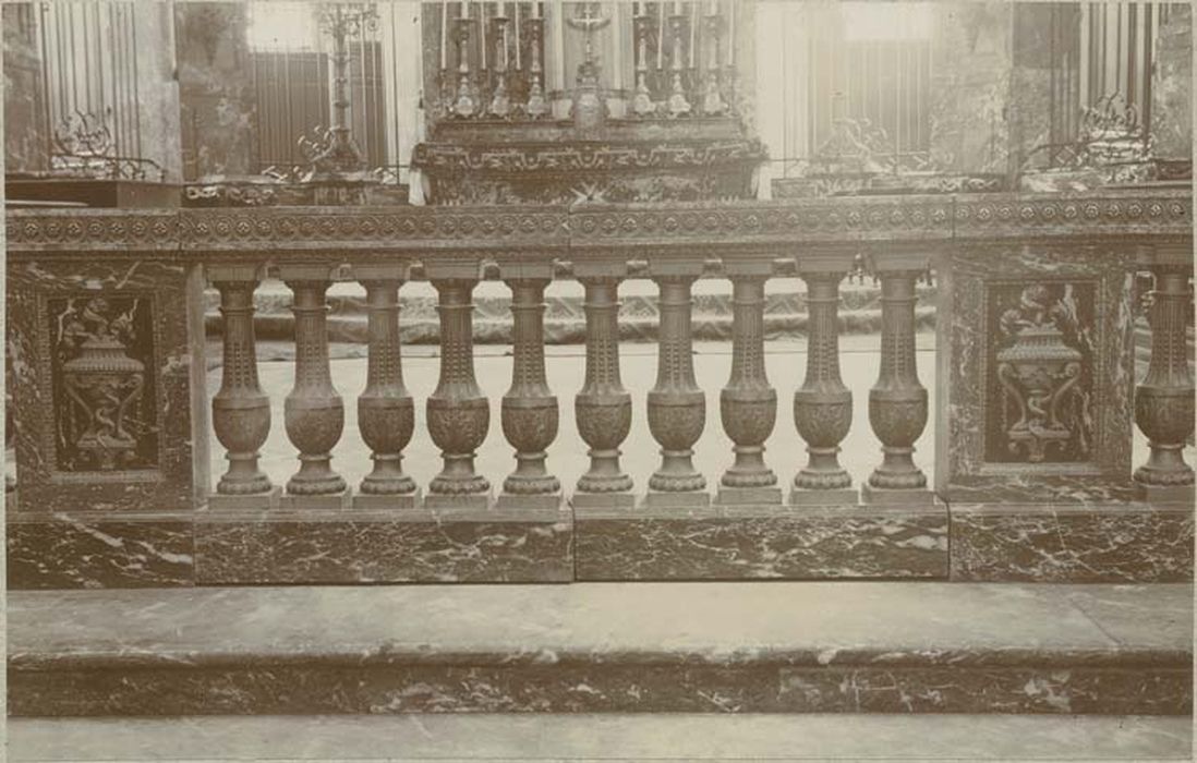 Liste départementale de 1978 : balustres et caissons utilisés dans l'appui de communion du maître-autel, bois sculpté, 18e siècle