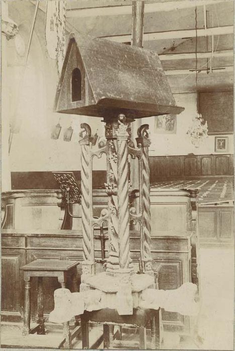 Oeuvre du 1er quart du 16e siècle par le style et le F couronné de François 1er. Ce lutrin fut transformé, ou plutôt complété d'un aigle de saint Jean monté sur le globe. Cet élément porte la date de 1636. Il est niché à l'intérieur du double pupitre.