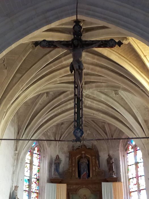 Christ en croix du 16e siècle provenant d'une poutre de gloire ; les statues de la Vierge et de saint Jean ont disparu à une date inconnue, antérieure à la date de classement.
