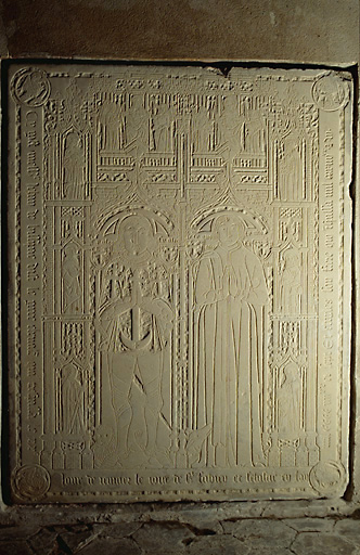 Liste départementale de 1978 : dalle funéraire à deux effigies gravées de Jean et Charles de Bissipat, morts en 1487 et 1496