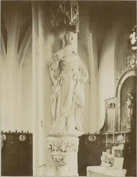 Cette statue, datée du 17e siècle, peut être comparée avec d'autres contemporaines conservées dans des églises de l'Oise. Elle se caractérise par sa tête de petites proportions.