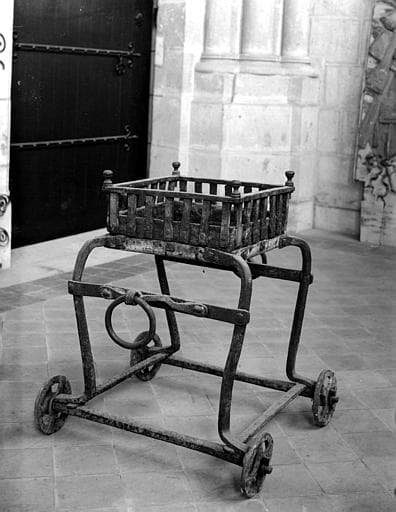 Chariot en fer pour transporter la braise à l'usage de la sacristie.