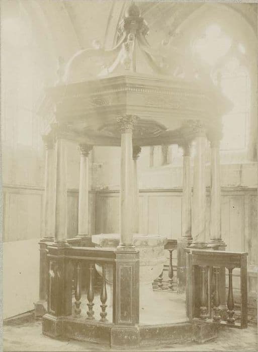 fonts baptismaux ; dais d'architecture