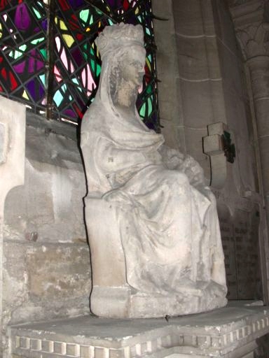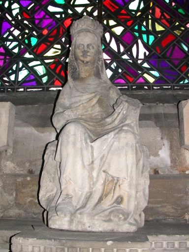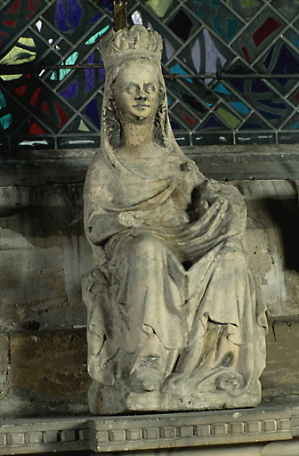 Liste départementale de 1978 : Vierge à l'Enfant, statue assise, pierre, 14e siècle (jardin du presbytère)