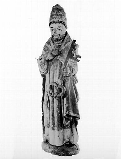 Le saint est représenté debout, frontalement. Coiffé de la tiare, il bénissait sans doute de la main droite et tient une très longue clef de la main gauche.