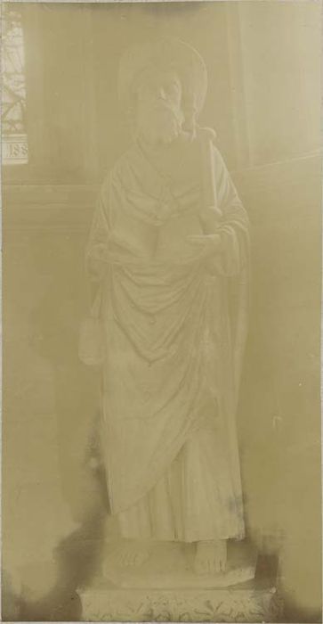 Les deux mains et l'attribut de Madeleine manquent. La statue de saint Jacques a été brisée en deux et recollée.