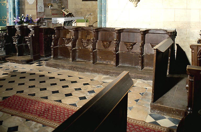 Cet ensemble est daté par travaux historiques du 16e siècle et proviendrait de l'ancien prieuré Saint-Nicolas. Il se présente aujourd'hui comme un ensemble incomplet et remonté. Les pupitres actuels sont du 19e siècle.