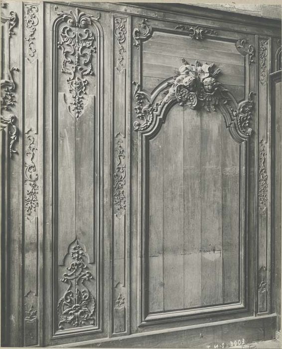 Lambris datés du 1er quart du 18e siècle ornés d'un décor de style rocaille.
