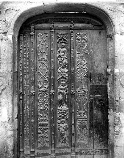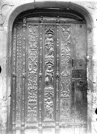 chêne (en plusieurs éléments) : taillé, décor dans la masse, décor en bas relief, décor en demi relief