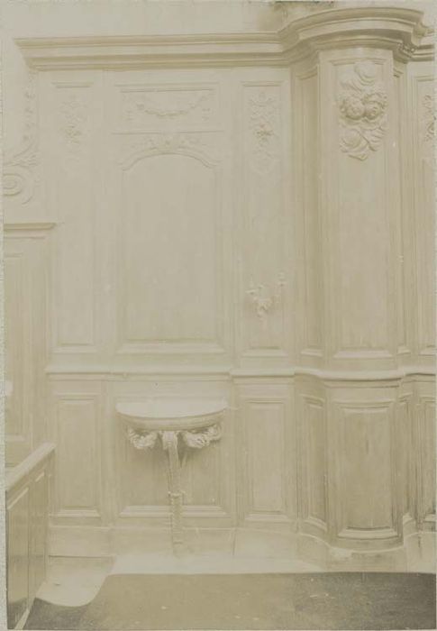 Le décor des lambris se compose de moulurations, feuilles de chêne, guirlandes, bouquets de roses, rubans et palmes.