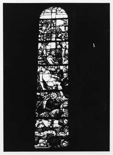 verrière figurée : Vierge de Pitié, Crucifixion