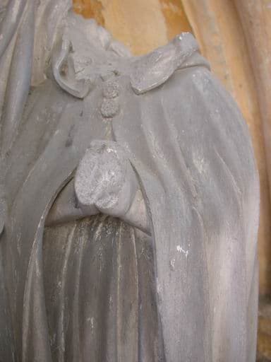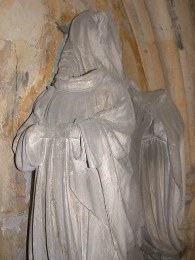 groupe sculpté : Saint entre Guillaume et Jacqueline Brunel ou Les époux agenouillés sous la protection d'un saint patron (monument commémoratif)