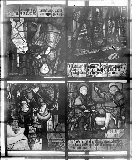 Verrière datant de 1550 donnée par la Corporation des cordonniers dont les saints patrons sont saint Crépin et saint Crépinien. Les inscription sont modernes. Oeuvre très restaurée par Lévêque en 1863.