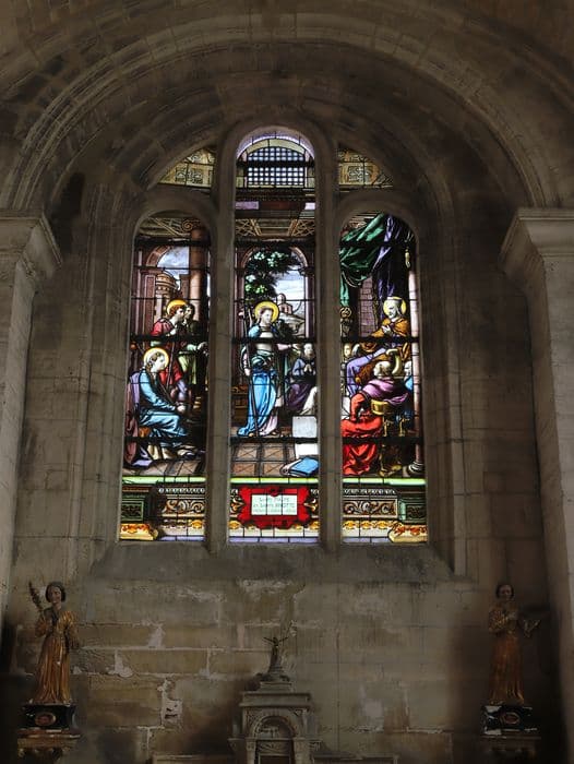 verrière (baie 4) : Saintes Maure et Brigide visitant l'évêché d'Arles