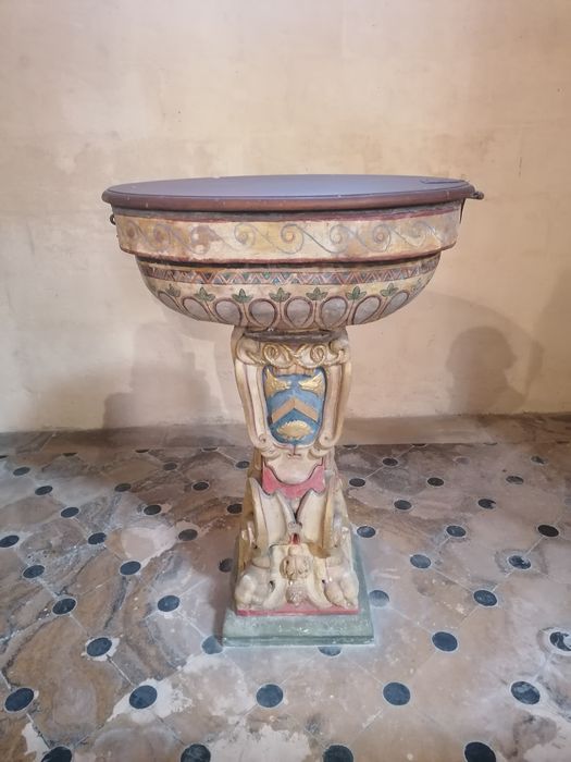 Fonts baptismaux datés du 16e siècle et du 18e siècle, peints au 19e siècle.