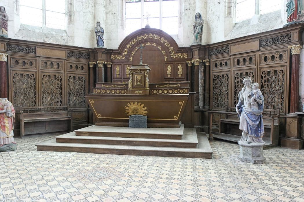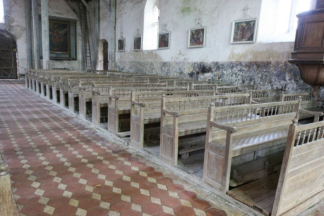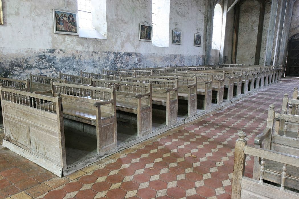 POP | Plateforme ouverte du patrimoineensemble : chaire à prêcher ; bancs ; clôture des fonts baptismaux ; lambris de revêtement (2)