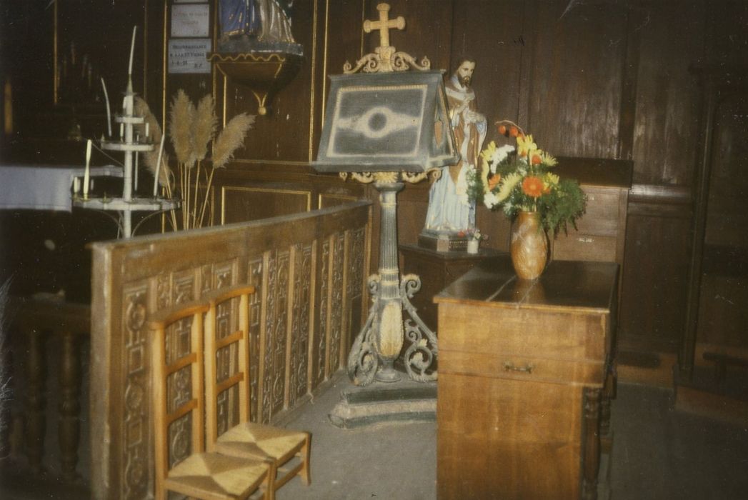 Fragments de l'ancienne clôture de choeur datés de la fin du 16e siècle avec surpeints faux bois du 19e siècle.