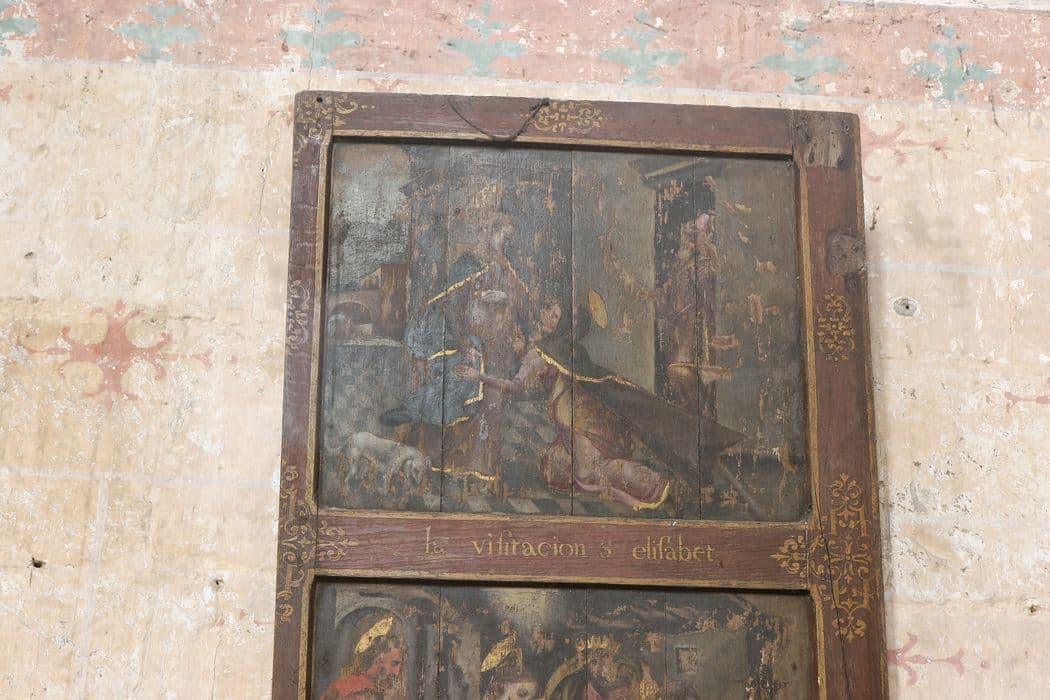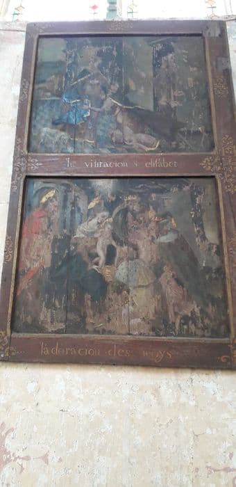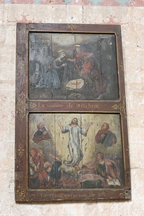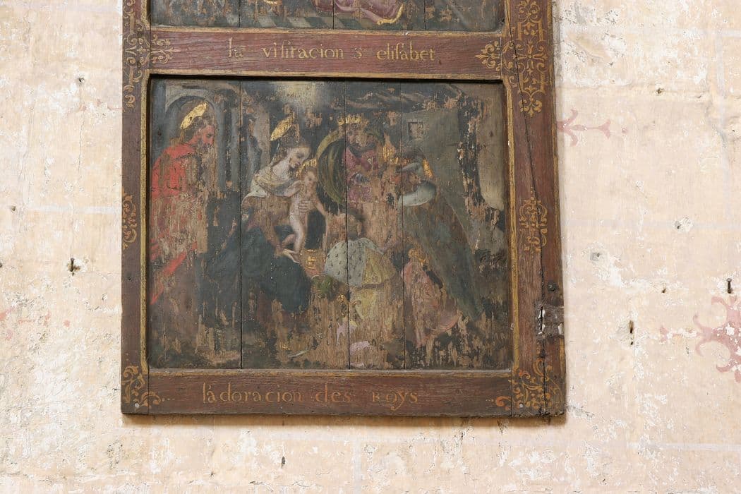 deux tableaux (panneaux de retable) : Visitation, Nativité, Adoration des mages, Jésus chassant les marchands du Temple Transfiguration