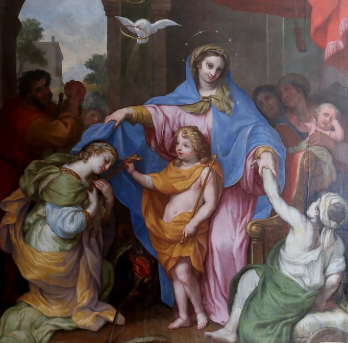 tableau (ex-voto) : La Vierge et le Christ Enfant avec sainte Marguerite