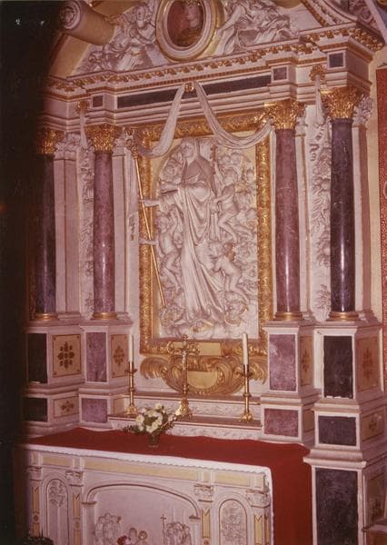 retables des transepts nord et sud et bas-reliefs : L'Apothéose de sainte Opportune, abbesse, et L'Apothéose de la Vierge