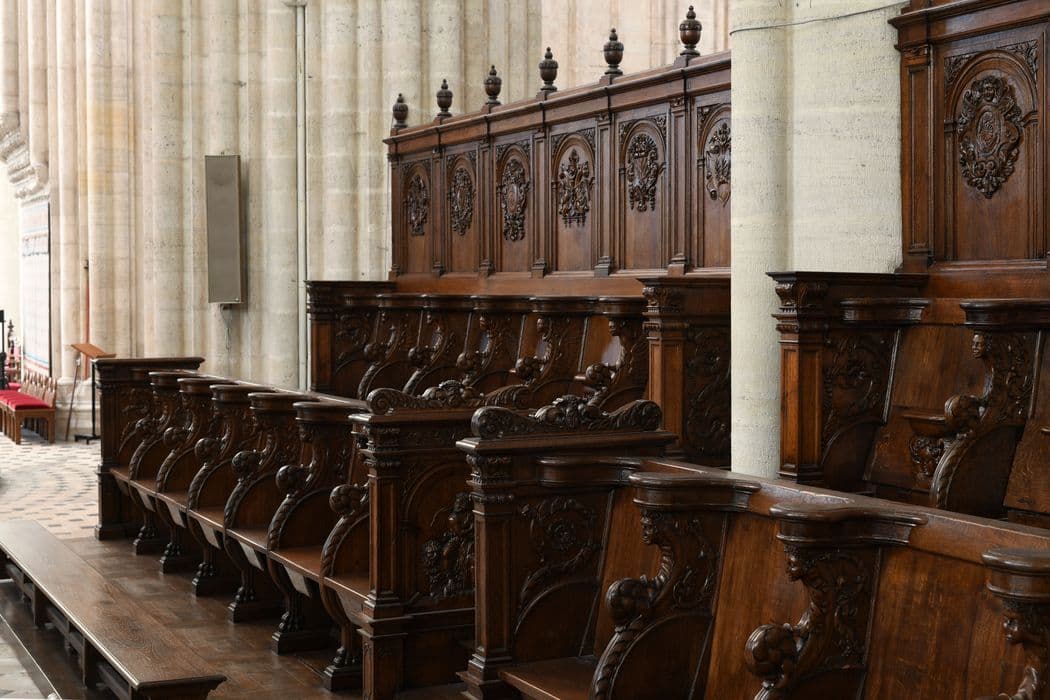 Ces stalles se répartissent en 10 de chaque côté du choeur, avec accoudoirs et miséricordes sculptés.