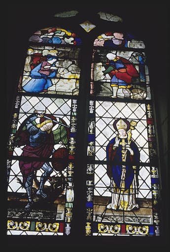 POP | Plateforme ouverte du patrimoineverrière : Saint Michel terrassant le dragon, un saint évêque