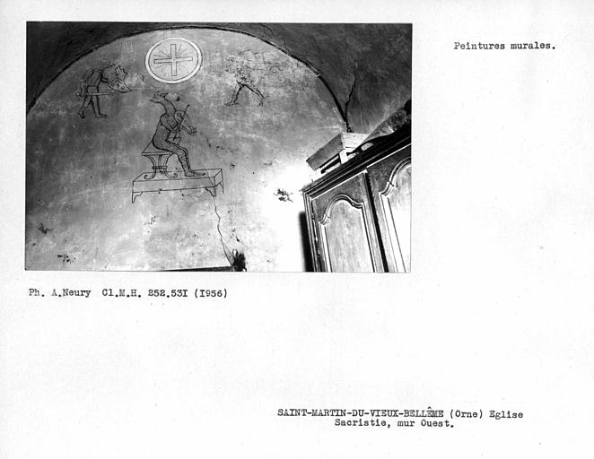 peintures monumentales de la sacristie : Christ en croix entre la Vierge, saint Jean et sainte Madeleine, Le Couronnement de la Vierge, Anges agenouillés portant un encensoir