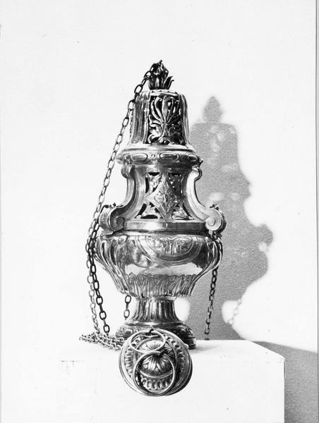 Cet encensoir présente une forme et un décor classiques.
